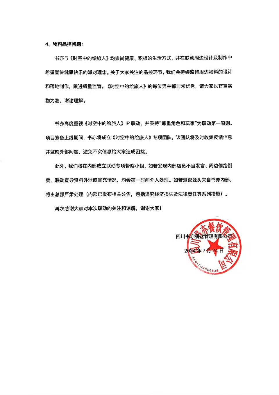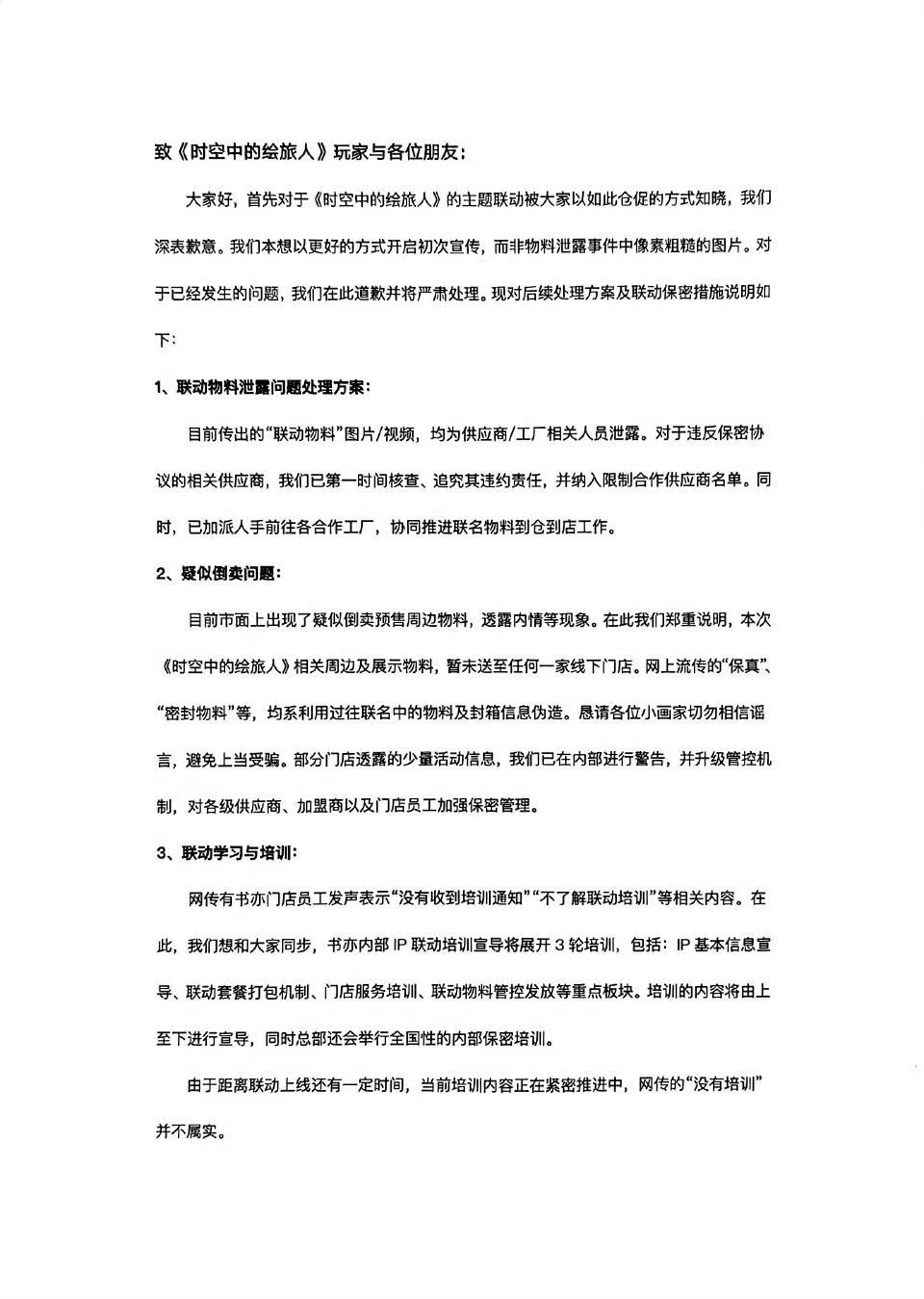 且书亦与其供应商的追责问题,不应由《时空中的绘旅人》玩家承担