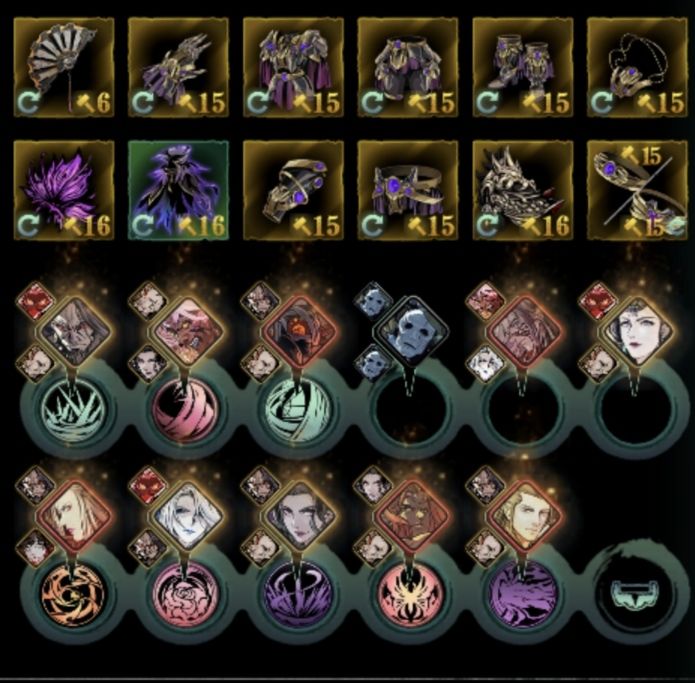 基本就是换新装备,有个需要注意的是:如果稀有红卡少,建议保持用魔堡羁绊,就是上图的醉青鸾和白武学卡换成紫铁蛋和紫蛇。