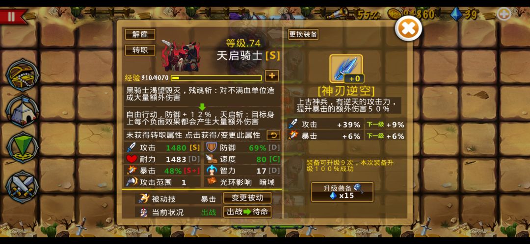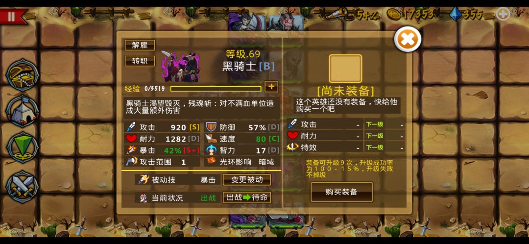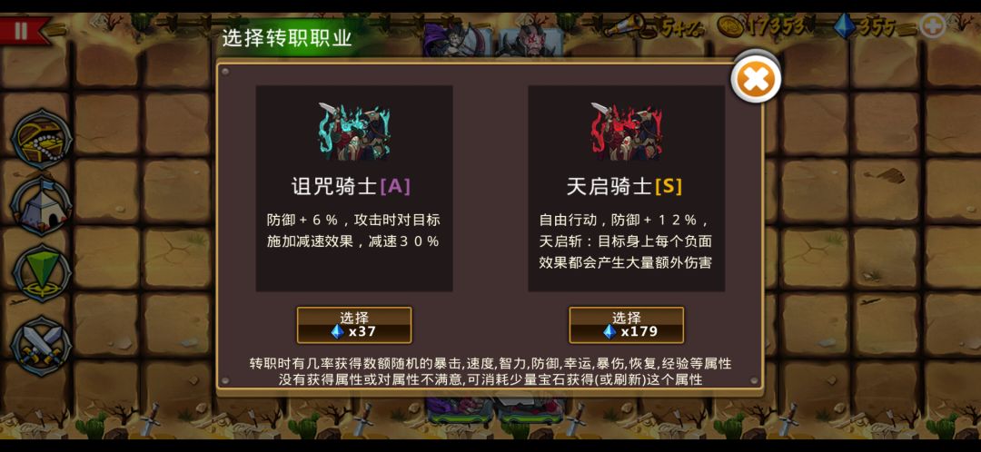 捉一只劣质黑骑士即可,不要太优秀的,因为它不需要速度,不需要防御,不需要体力,可以节省转职费用。反而你需要捉一只低速的黑骑士,以后发制人,需等其他成员先攻击,把负面buff堆到boss身上后,骑士再给与致命一击,这就是天启骑士技能所在了。