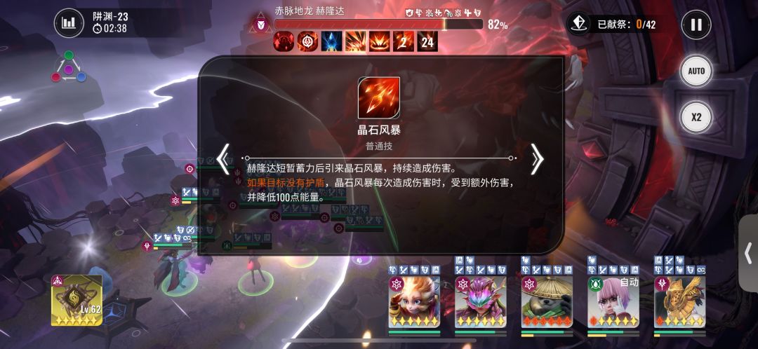 2)boss第一波机制杀后,由于我方献祭人数不足,所以桃子、妖王熊猫会死。记得在机制杀前,把能量手动第一时间用掉。3)粉毛挂上自动战斗即可,接下来只要操作猴子的能量即可。猴子能量释放的时间,只要在晶石风暴剩余10-11秒左右释放,接下来时间“合适”有就放