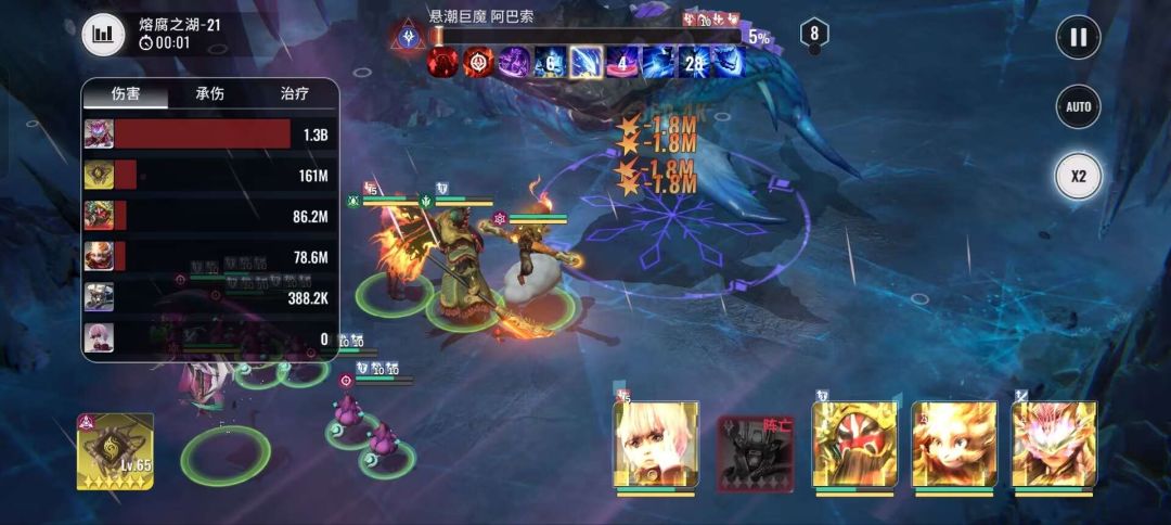 这图是张三大佬上阵4星关羽提供破甲时的输出值,可以看到最高伤在1.8M左右