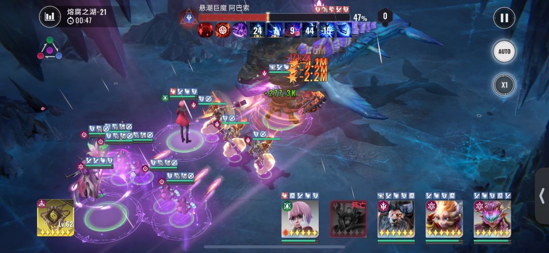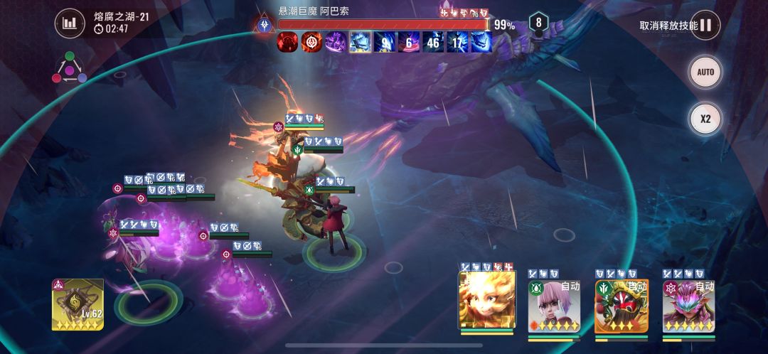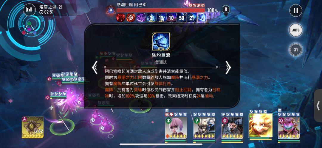该技能主要要防的是一手净化负面效果,技能一开,我方施加的自身buff及debuff都会被净化掉,会减少非常多的伤害。那么怎么规避呢?那就是,在boss释放该技能后,在把有buff能力,及debuff能力的技能放出去。回到本阵容来说,牛头、桃子,粉毛的能量技能都有这些效果。