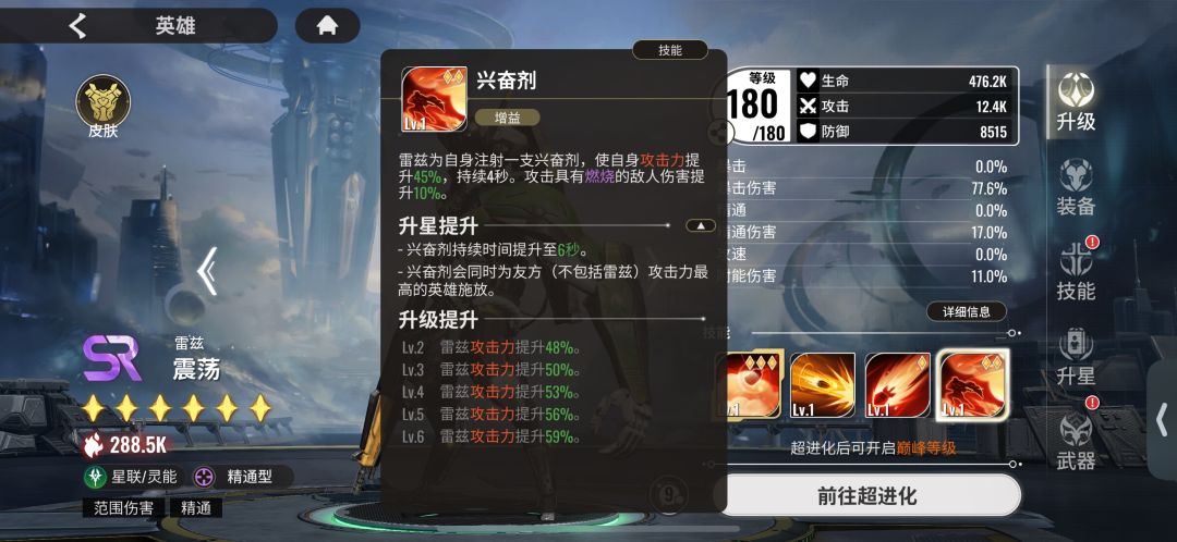 震荡这张卡作为一张SR卡,想必已经被大家包括小白自己遗忘在卡池的最角落里了,这也是一一大佬的神奇之处,竟然想起了震荡的神技能。就是上图的兴奋剂!提升59%的攻击力,给最高的攻击力单位,那变相就等于给桃子!一下子提升了很多的输出!并且震荡在开局不久就会被鲸鱼一屁股坐死,还能减少一个单位不跟小桃子抢“魔阵”,深藏功与名!