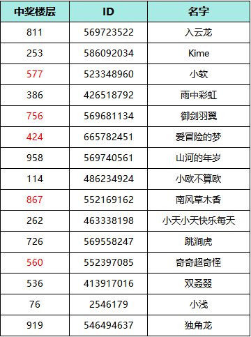 恭喜以上玩家获得奖励,被删楼层顺延至下一位,未获奖的大大们不用灰心哦,小编也会发布更多的福利给到各位大大们~