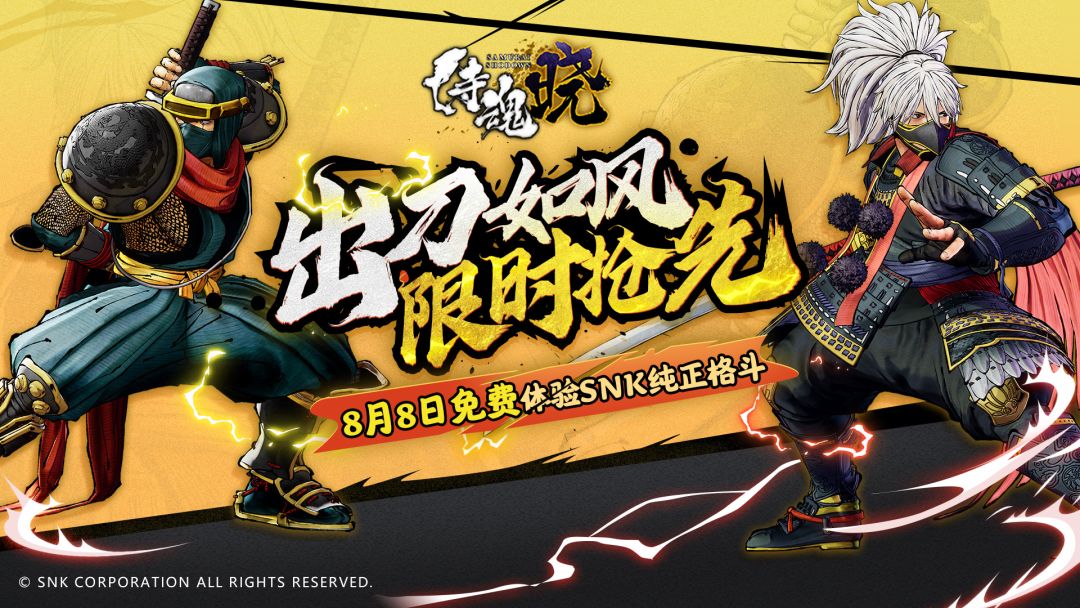 一股来自东瀛的武士之魂正在这个夏日悄然觉醒,《侍魂 晓》8月8日10:00开放限量测试,测试资格招募现已开启,参与测试抢先免费体验SNK纯正格斗吧!