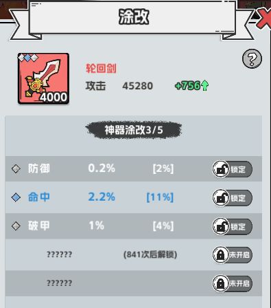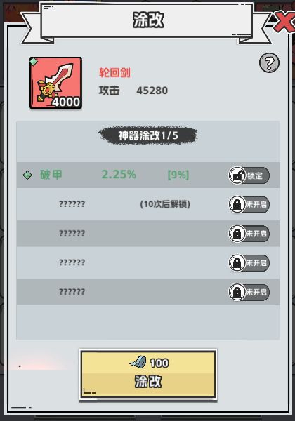 2.每次装备涂改需要消耗涂改带,涂改会使每个孔位的属性加成发生变化,并有40%概率提升装备的基础加成;