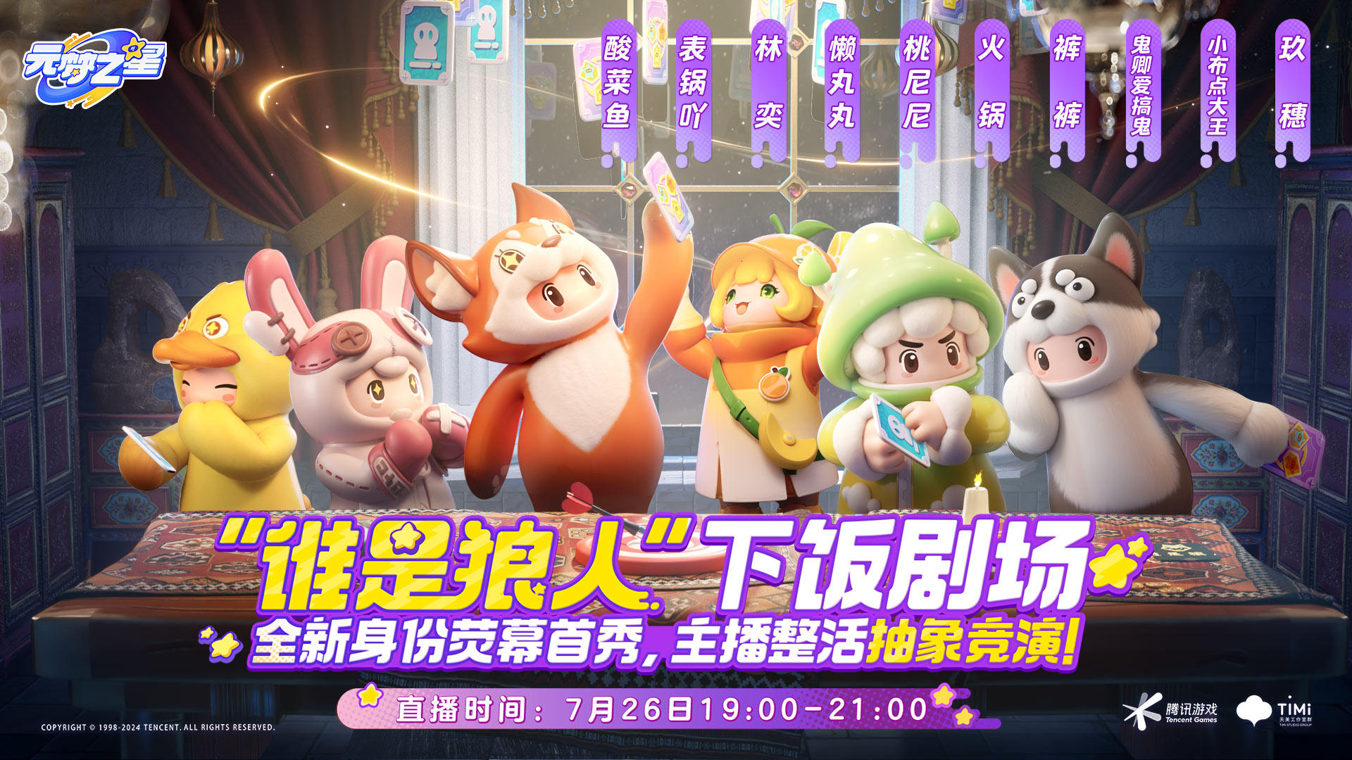 主播团建花式乱斗整大活,谁将成为“狼人大师”?7月26日19:00,锁定元梦之星官方直播间,星妹和你不见不散哦~