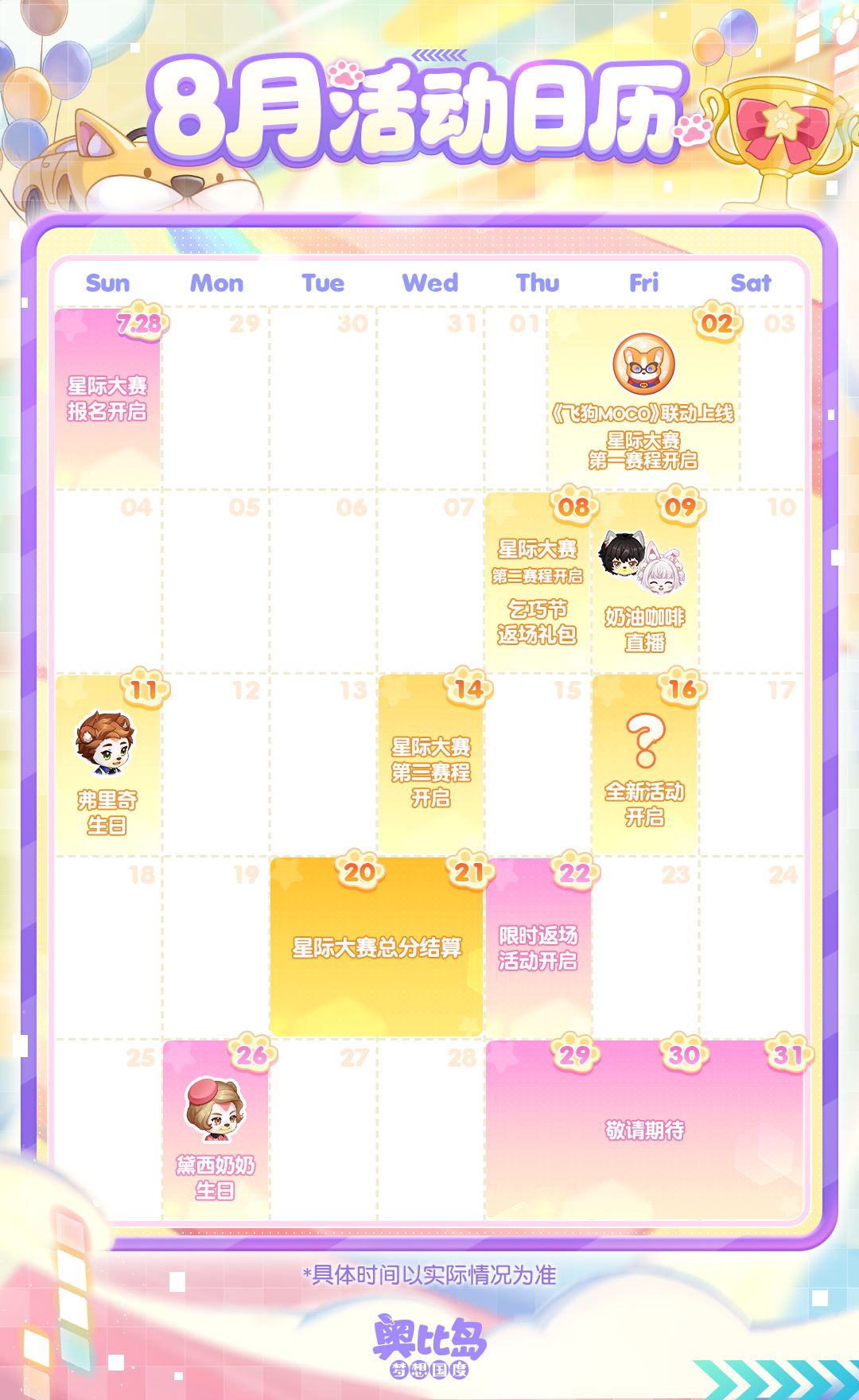 📅作为最值得信赖的赛事记者,本兜通过不懈努力,终于从星委会帮家熊们拿到了本次大赛的赛程表!除了星际大赛的赛程信息,还有8月的其他惊喜活动,小奥比们快来一睹为快吧~