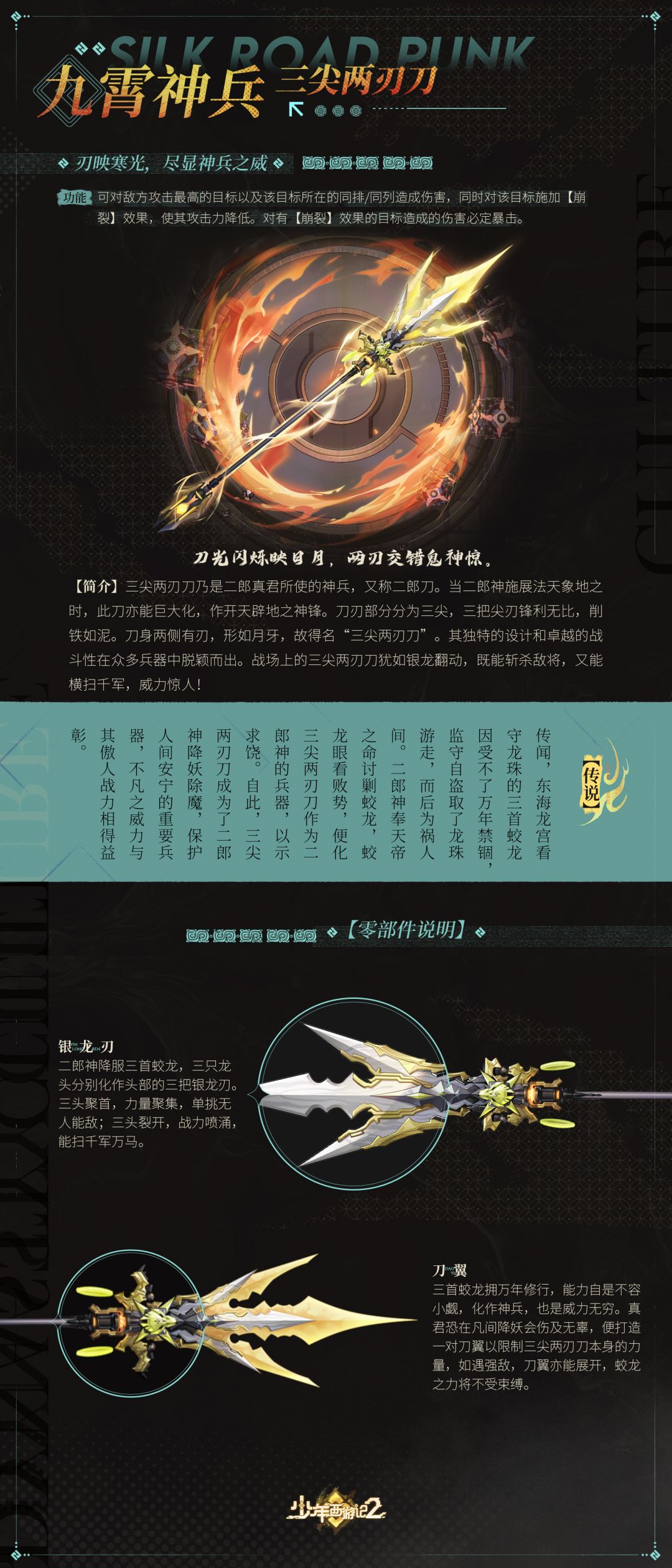 三尖两刃刀,乃是二郎真君降服三首蛟龙所得。