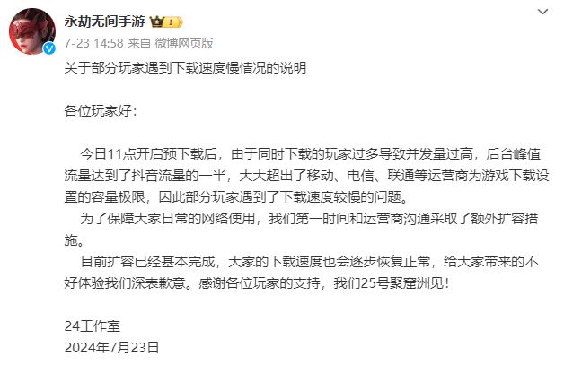 23号开启预下载后,因为实际的玩家流量远超预期,我们不得不紧急联系运营商扩容。