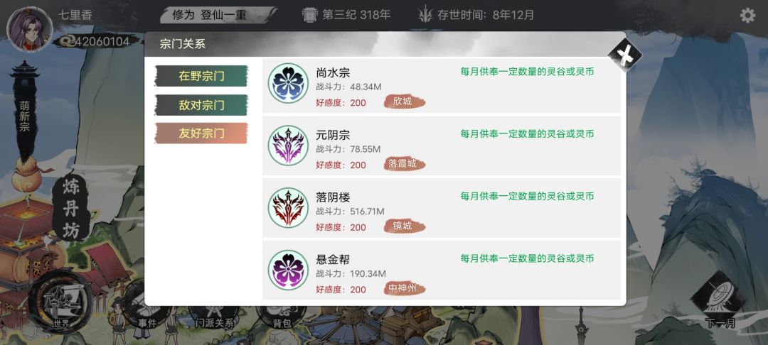 这里有个窍门,藏经阁前期可以不用管,等到能升到36级的时候再往里放地阶以上的秘籍。这样弟子学的最低也是地阶功法,后期提升战力全靠彩色功法。所以主角学完了就可以放藏经阁了。后期可以随缘培养100m战力弟子。