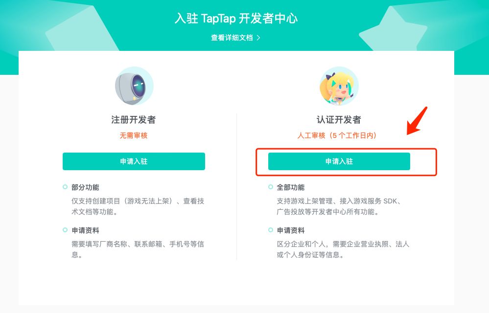 Step 2 👉 在 TapTap 开发者中心认证账号