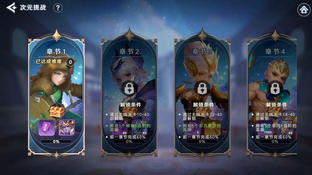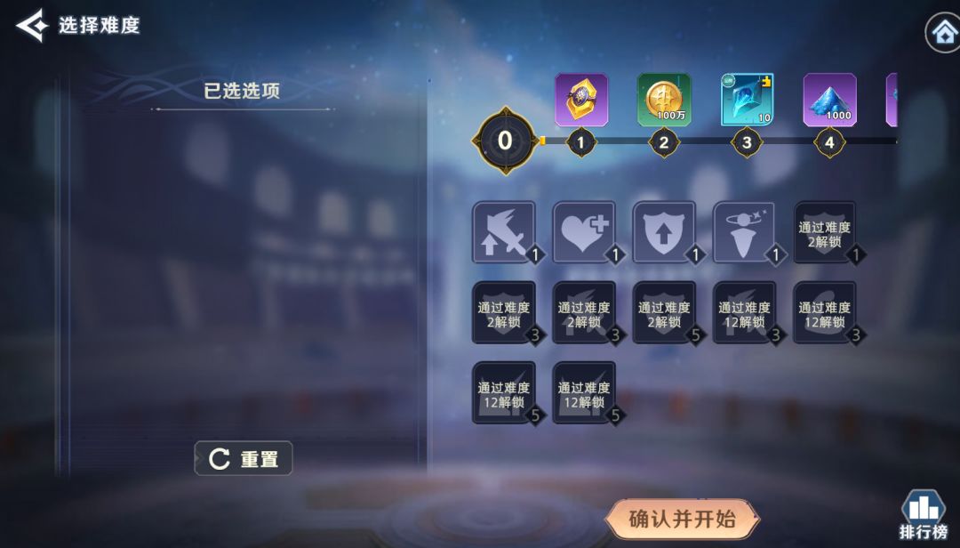玩家可以在次元挑战的不同章节自行选择试炼词条,不同难度的试炼词条会为挑战增加不同的难度积分,挑战成功时玩家会获得难度积分对应的奖励。