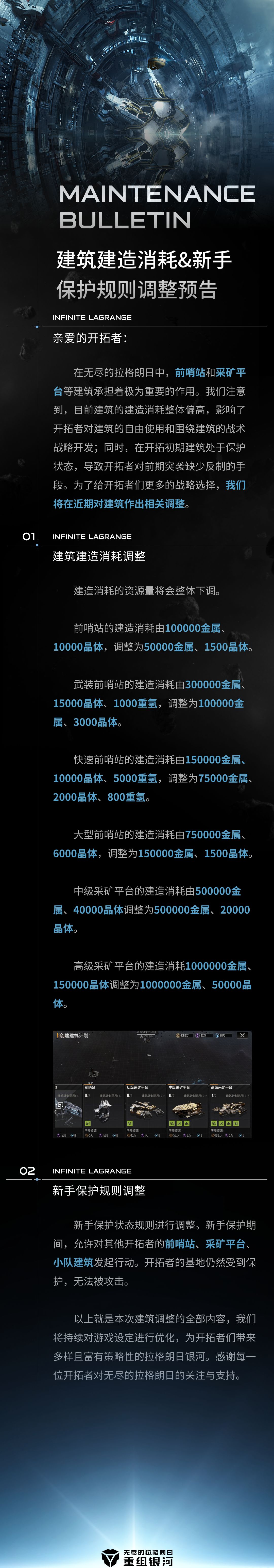 建筑建造消耗&新手保护规则调整预告