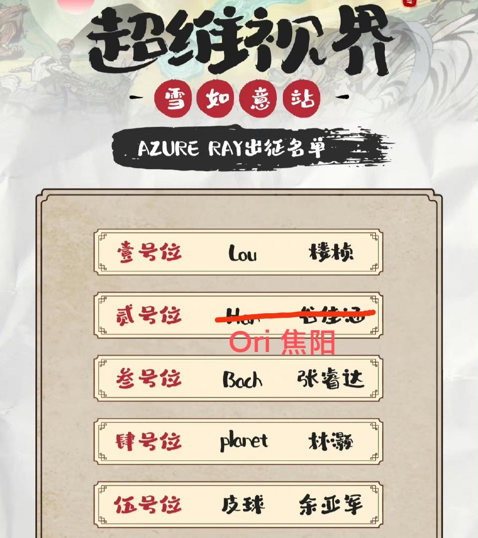 官方决定,临时调整队伍阵容由Ori作为替补出站