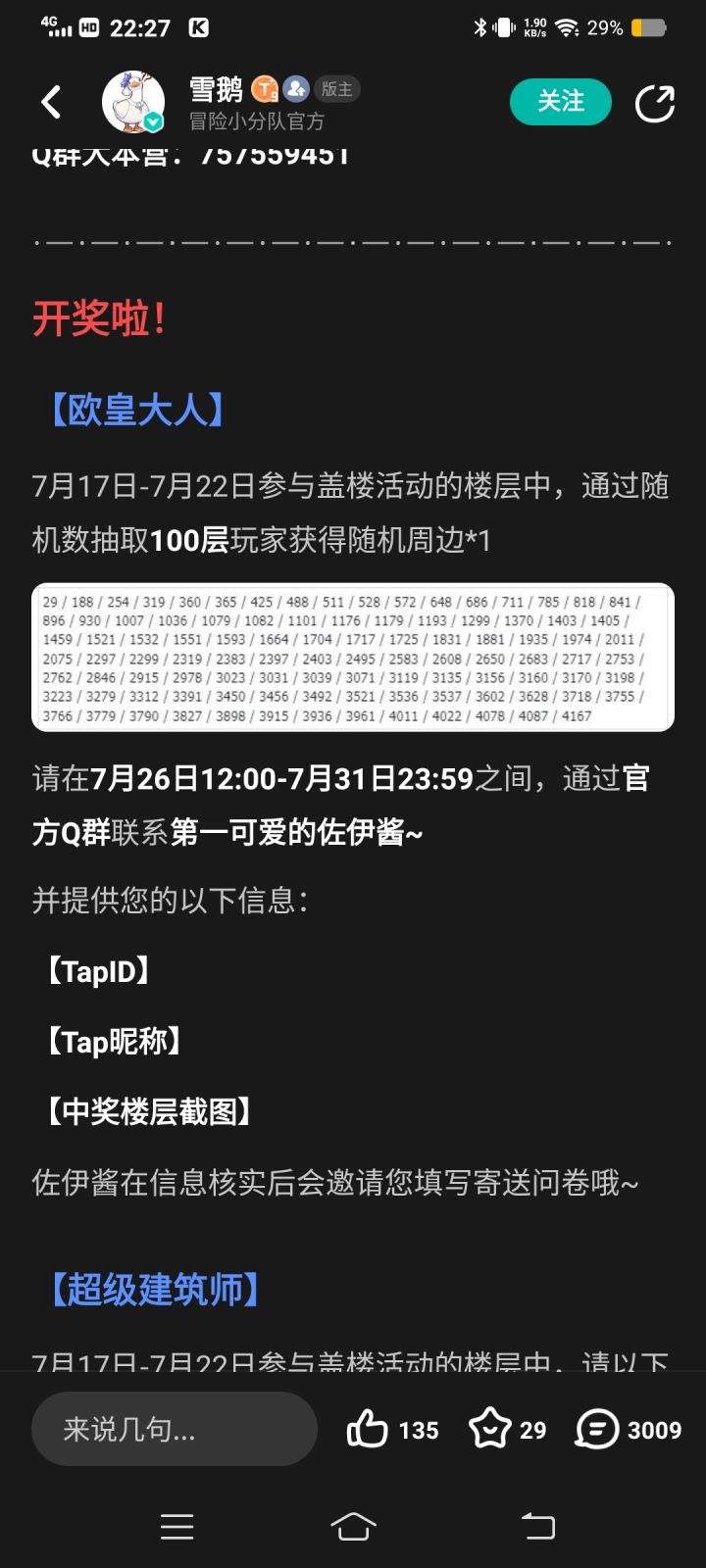 哈哈,不知道是不是真的送,反正我当晚和米虫刷楼时就是单纯无聊在那从2918开始刷到3218一直聊天,没想到今天突然告诉我中楼了