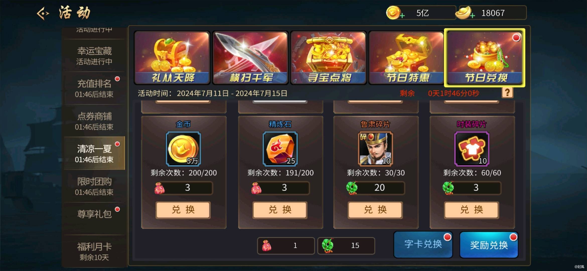 ④字卡活动,每次的字卡活动都会有金币,精炼石,觉醒丹等材料兑换,大概一个字卡活动除了兑满金龙令以外还可以兑换2000左右的精炼石,也是一个绝佳的获取途径。