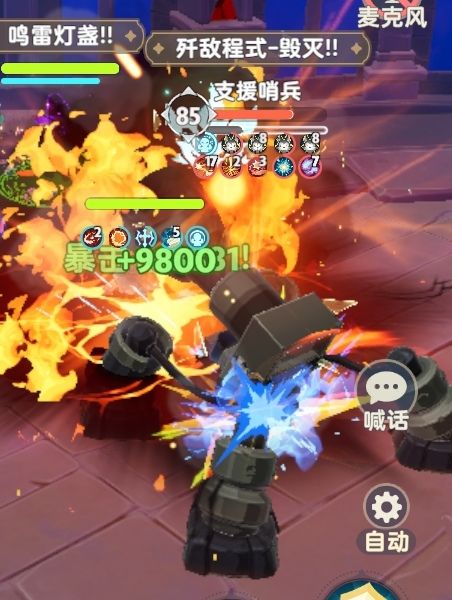 「支援哨兵」开启毁灭程式,蓄力后向随机目标发射炮弹并造成少量伤害。
