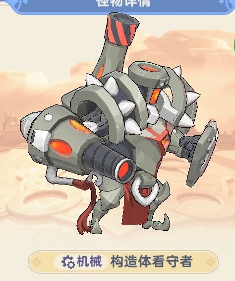 「构造体看守者」随机选择一个非当前目标的友方并锁定,被锁定的友方头上出现标记,「构造体看守者」会在一小段时间后朝被锁定的友方发射炮弹,并在地板上留下标记,共发射3枚炮弹,造成大量伤害。