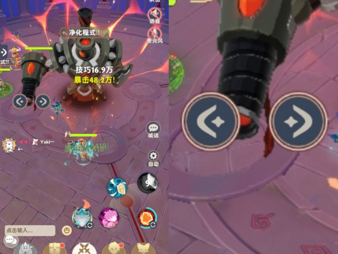 在战斗开始前与队友沟通往左或右躲避【靶向清除】,当脚下出现炮弹标记后按照约定的方向移动躲避炮弹。