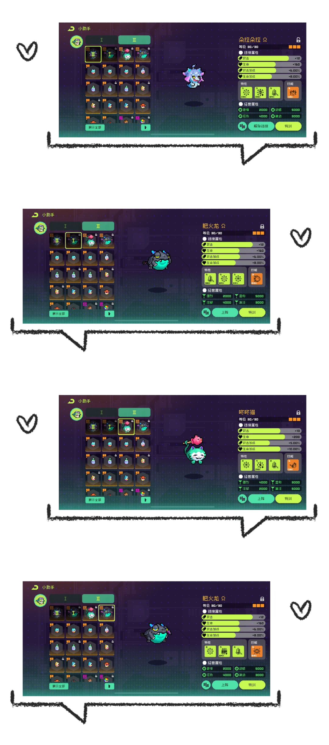 总结:宠物养成是一个相对复杂又缓慢的过程,建议大家不要操之过急,理性抽取,最后贴上我的四只小可爱,也祝愿大家都能抽到心仪的888Ω神宠!