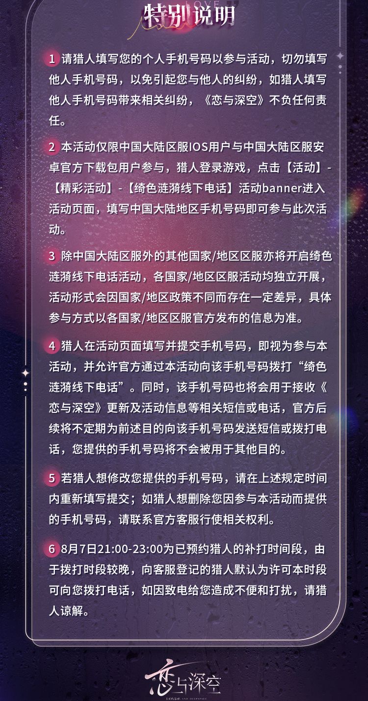 恋与深空线下来电☎️预约