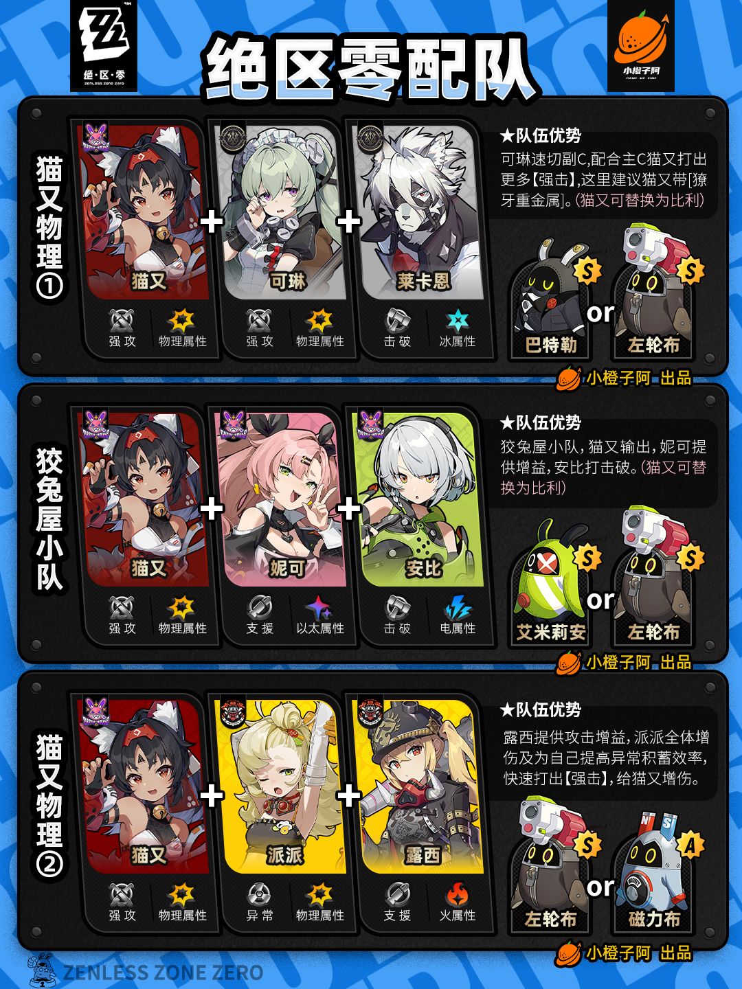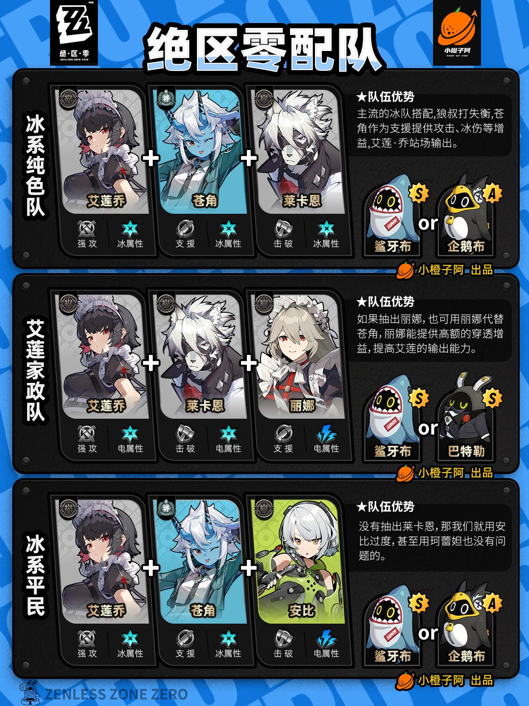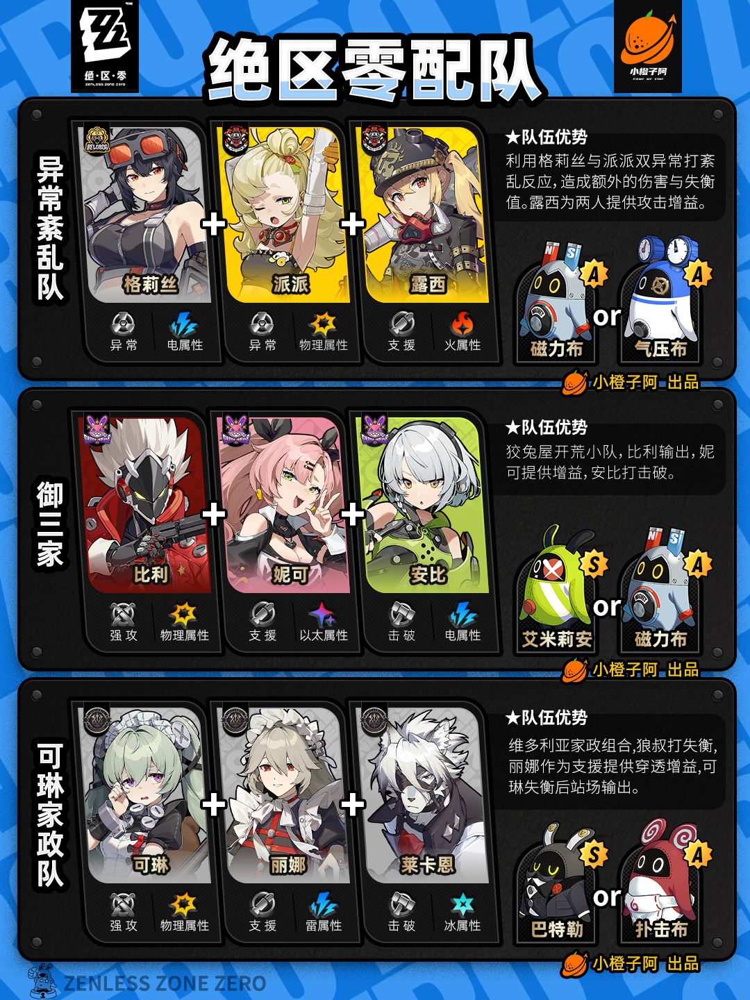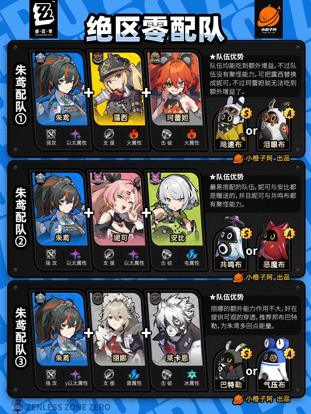 这一期是全角色的配队情况,橙子已经将朱鸢几个主流配队都进行罗列的一遍,方便大家根据自己box的角色进行合理的配队。