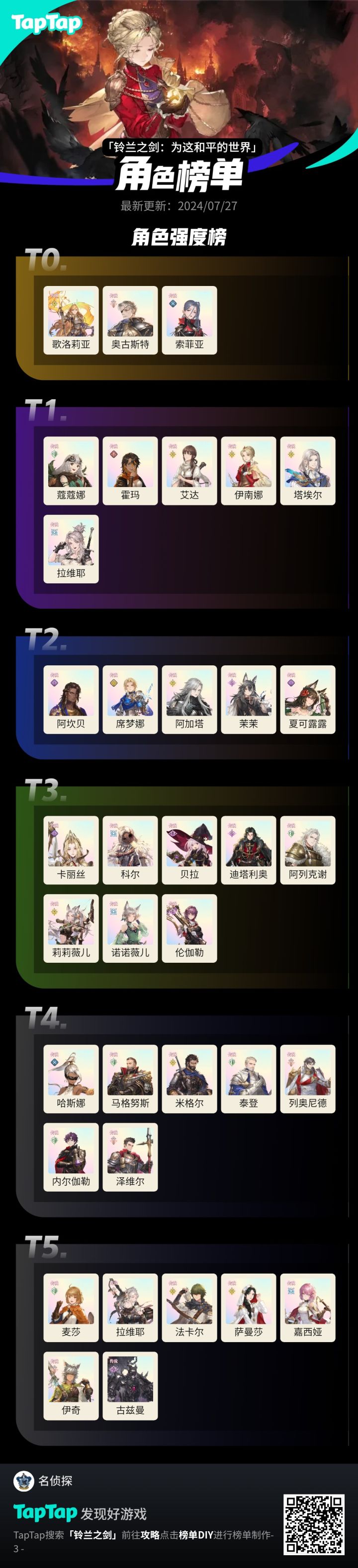 综合考虑了逆塔,pvp,征服之塔,荣耀之战的登场率和强度。翠斯坦暂定T1,帕米娜暂定T3。剩下的几个都是楼主心目中的T5