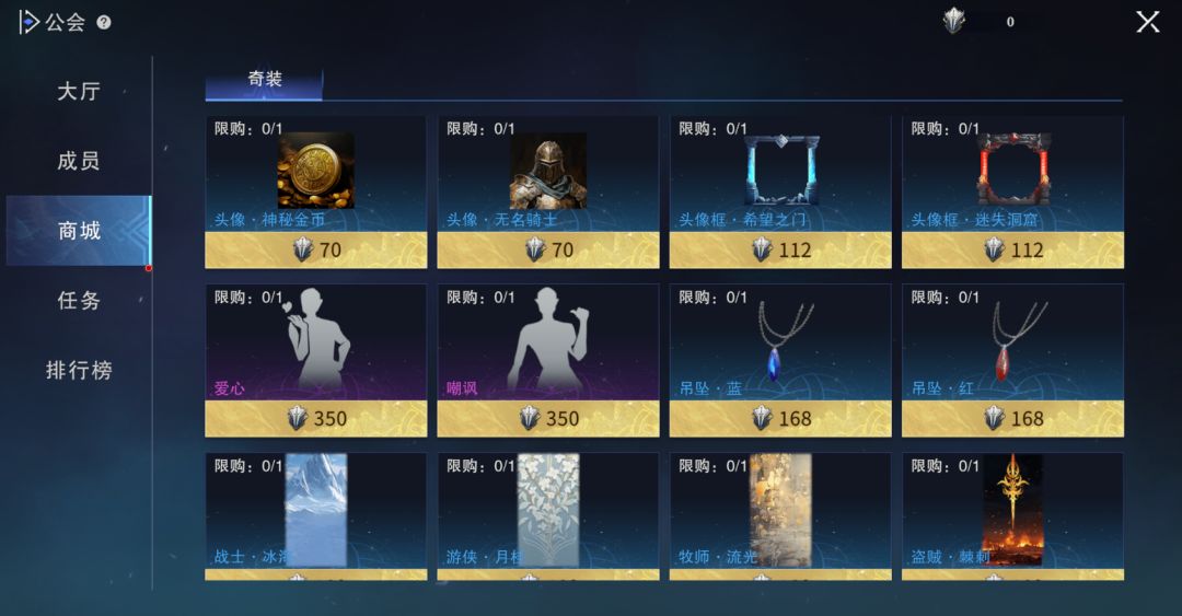 2、每周完成对应的公会任务,可以获取金币以及公会贡献点,贡献点可以在公会商城中兑换头像框、角色动作、角色背景以及时装等