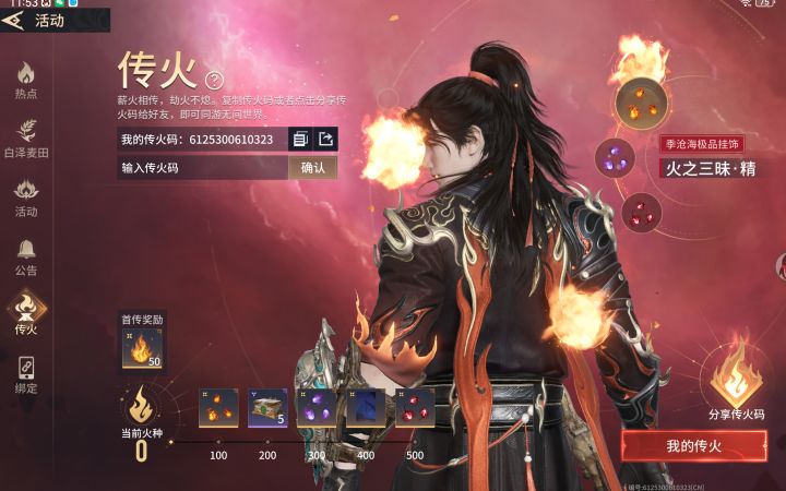 最新活动传火输入传火码:6125300610323可获得季沧海传说饰品和宝箱,背景等丰富奖励