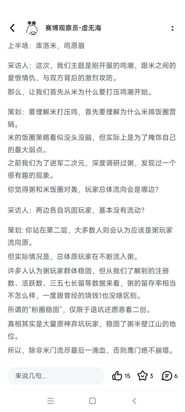 采访人:怎么说呢,感觉相当反常识,有点吃惊。我一直觉得客观来讲,米的游戏质量非常强,只是运营和制作方向的问题……