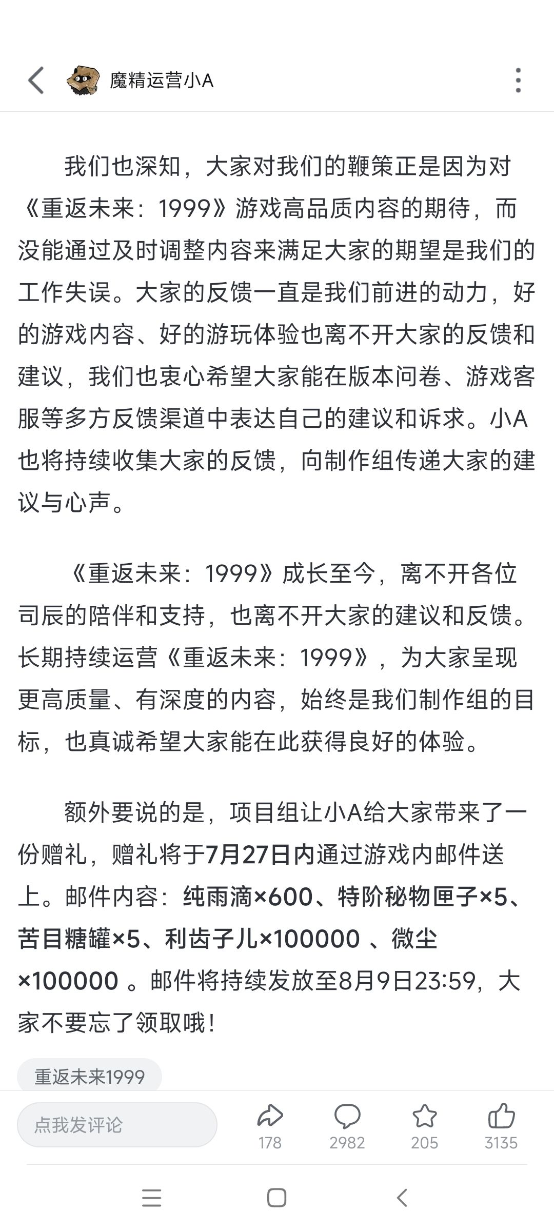 ps:自尘白禁区开通后,碧蓝档案,1999也相继开通自己的运营人员b站账号。各位想提建议的可以去提了。