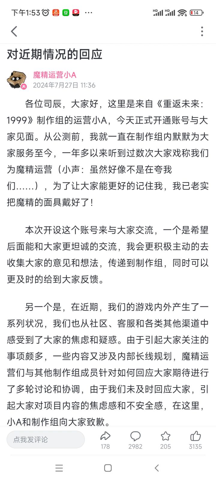 本次开设这个账号来与大家交流,一个是希望后面能和大家更坦诚的交流,我会更积极主动的去收集大家的意见和想法,传递到制作组,同时可以更及时的给到大家反馈。