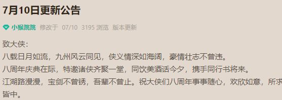 放置江湖下旬更新,31号也确实是七月下旬,也确实没毛病,放置江湖更新在周三并且发公告,但是周四才正式更新上线。