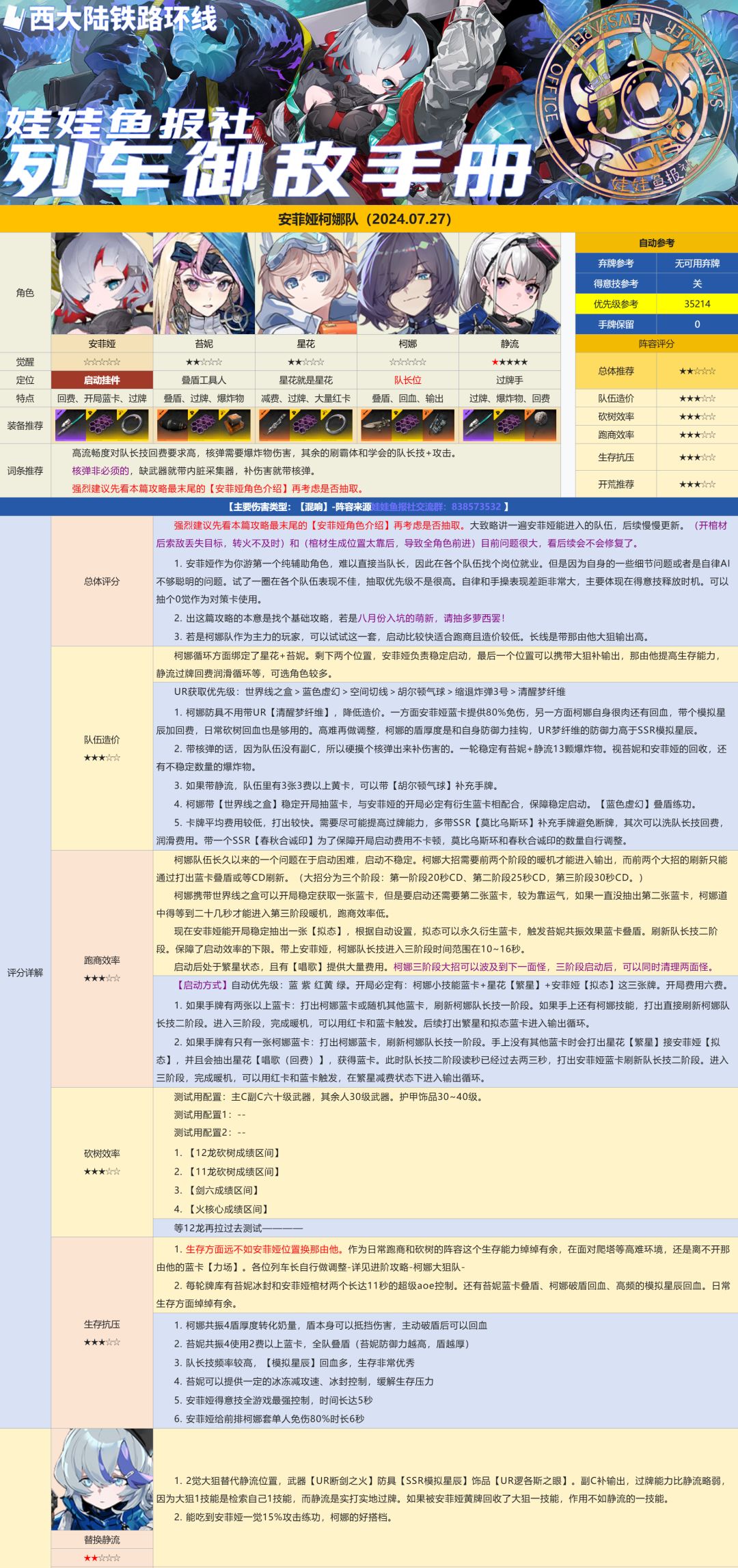 总体来说是一张高难环境的对策卡,手操上限极高但自动下限也很低。不推荐刚玩游戏萌新抽取,老登愿意的话抽一个很不错,0觉即可。五觉很强但是暂时无用武之地,期待她与后续角色的联动以及普攻队中的发挥~