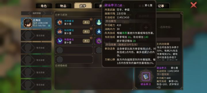 1.开局的武器可以考虑拳,因为拳掌≥30子时可以在破庙拿到破庙拳法(如果你带草木皆兵可以无视,但个人感觉测试版的草木皆兵性价比并不高)