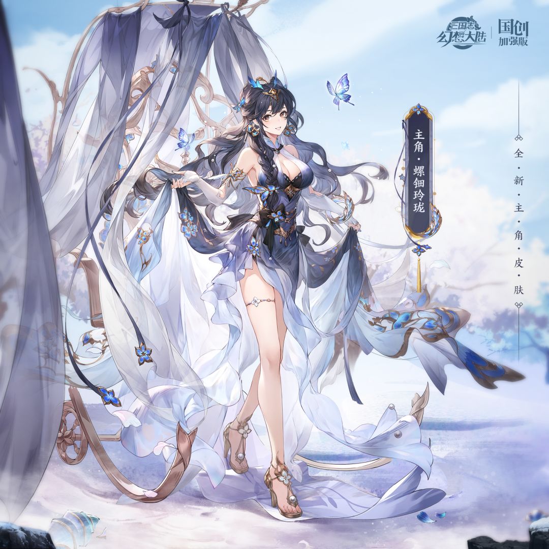 皮肤以白色为基底,佐以深邃蓝色,夏装设计巧妙融合了古老螺钿文化的精髓,为炎炎夏日织就一曲浪漫物语。轻盈透气的纱质面料,每一寸都透露着梦幻与缥缈,新衣上精心镶嵌的片片螺钿,闪烁着温润光泽,于微光下绽放海洋深处的神秘魅力。步履间,仿佛携带夏日海风的低语,完美勾勒出关于夏天的浪漫传说。