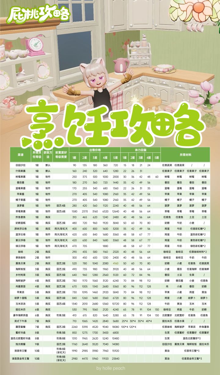烹饪食谱大全(含售卖价格、体力回复等)