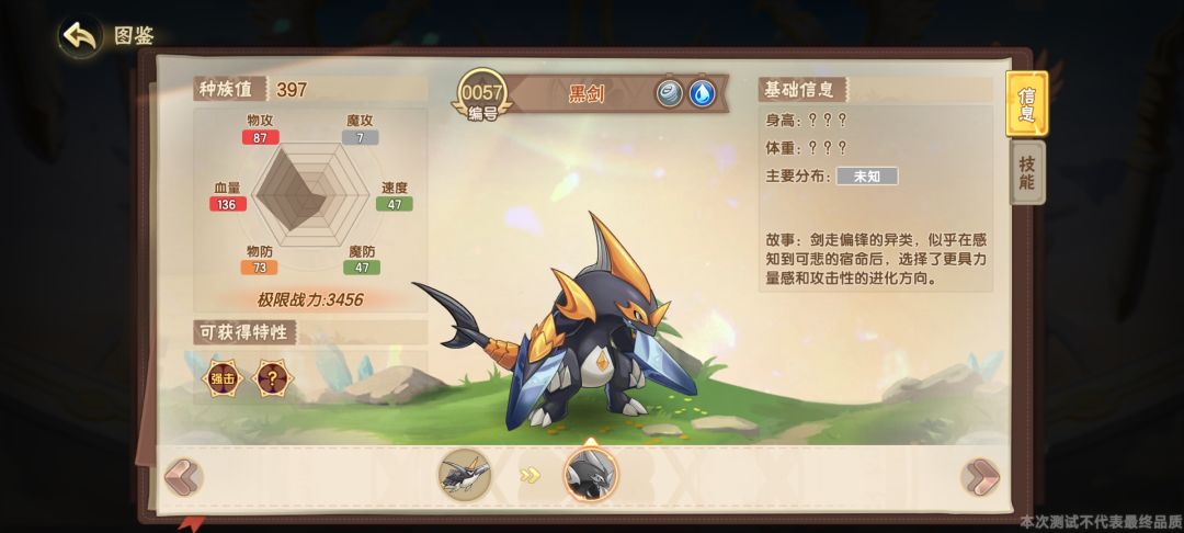 白剑/黑剑,水系当中具有相当不错的输出能力,攻击物防下降的对手时百分百暴击,且自带破防技能,pve黑剑,pvp白剑。获取途径:湖心石支线任务获得初始形态,20级训宠师开启远航后通过远航商店获取进化。圣灵选择:累势6件套,3战意3突击。