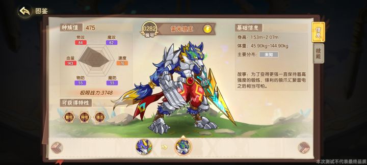 其次是狼王,输出平滑,基本无空档,种族值也很可观,就是获取有些麻烦,在不氪年费的情况下和火主以及宝蛇已经能打大部分的boss了。圣灵选择:累势6件套或3战意3突击。