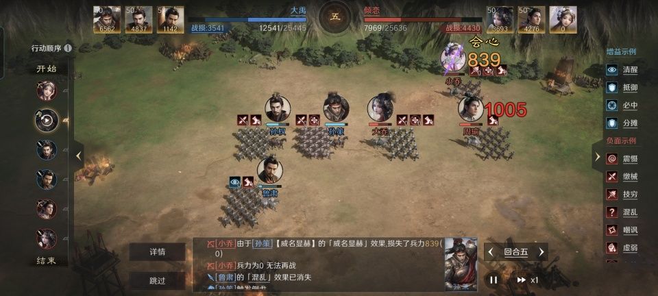 在此需要特别鸣谢游戏ID名为“大禹”的哥们,他是本文的素材提供者,其在世界公频分享的孙策、孙权、鲁肃组成的缴械枪,力克了周瑜、大乔和小乔组成的铜雀弓。由上图可知,两边队伍都是极其擅长施加负面状态的。要不是孙大圣在第五回合抓到了机会将小乔击溃,整盘的胜负还真是犹未可知。这场势均力敌的较量,为什么最终是缴械枪胜出,接下来就带着大家复盘。