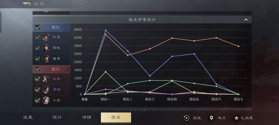 相比之下,鲁肃的划湘分荆发动率达到62.3%,一计决胜发动率达到52.3%,料事如神发动率达到62.3%才是最能决定战场成败的。对面的小乔,天香仅仅发动了2次,奇门遁甲更是挂零,可说基本没起到什么作用。大乔的横征暴敛倒是挺活跃,却正好被鲁肃的断粮给压了下来。仅凭周瑜一人,根本撑不起铜雀弓。