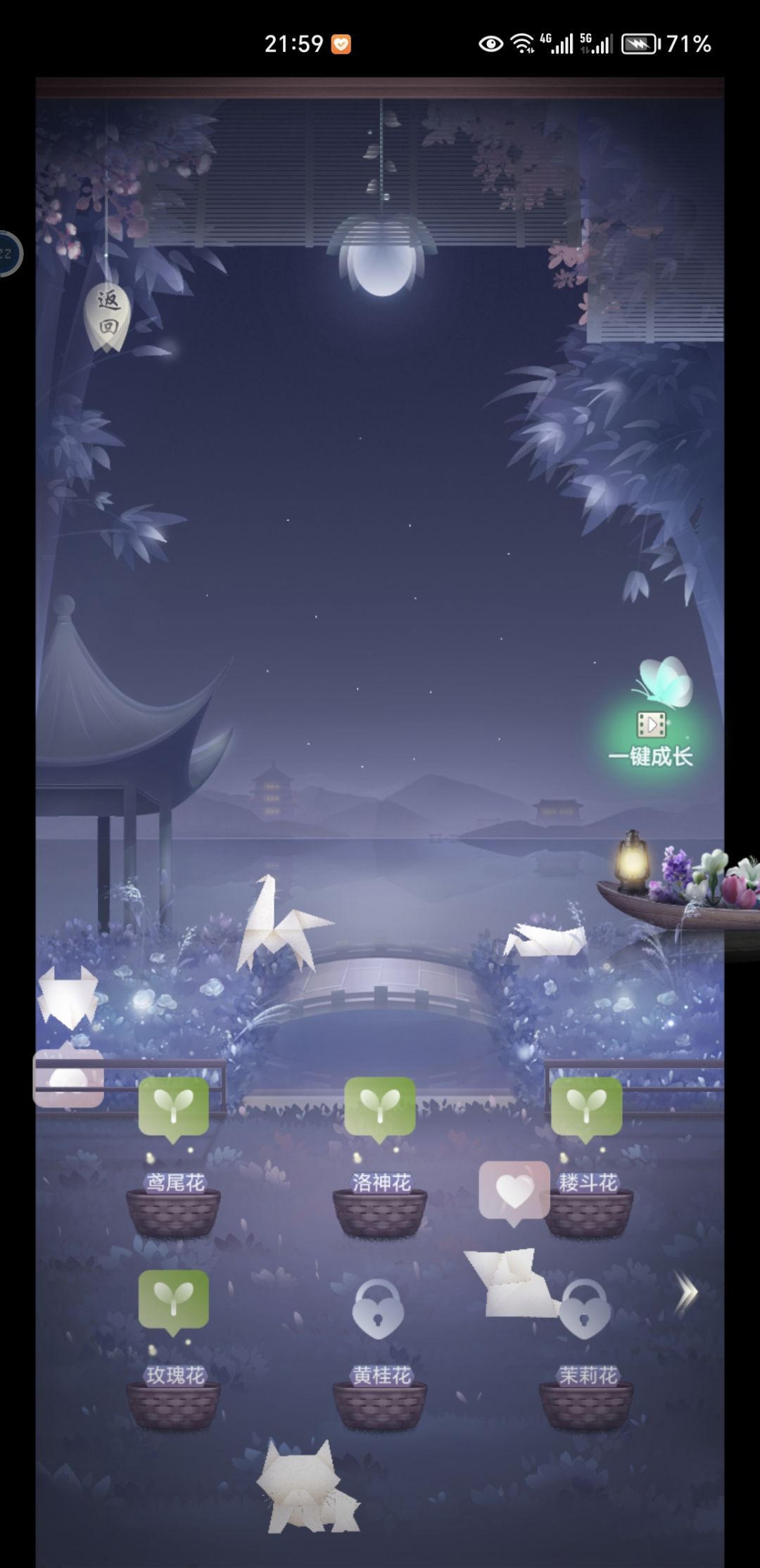 小花园里可以收折纸动物的茶叶(过一段时间它们头上会出现小爱心,点击就可以),也可以种花,先点盆里的苗苗,然后就等读秒,读秒完点击出现的气泡,浇水除虫除草直到收获,种出一种就会解锁新的一种,可以同时种,收获的花会出现在泡茶的界面。