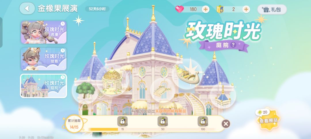 对于刚入手的萌新,都是会送免费的20抽的,但其实可以免费抽25抽,本期的金橡果展演《玫瑰时光.浪漫》《玫瑰时光.俊雅》和《玫瑰时光.庭院》,前面两个主要分男女,任选其中一个先抽10抽,每个的首发10抽都是必出稀有物品,这时候你再单抽五抽,他会返还你30张展演通票,相当于送你5抽,刚好又是10连抽,再选另一个喜欢的卡池,抽十抽这样的收益最大。
