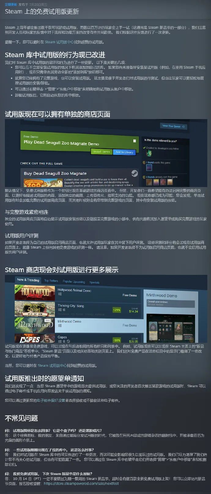 Steam免费试用版功能更新 可拥有单独商店页面