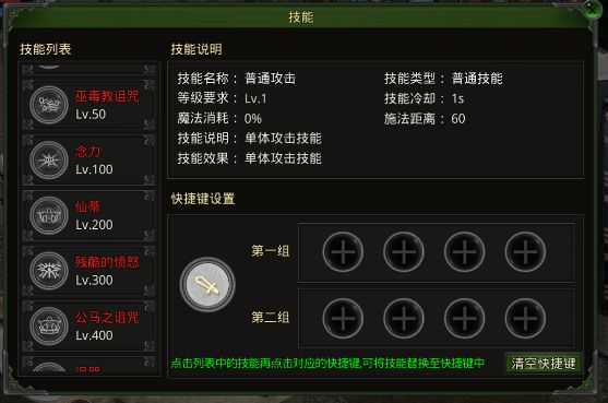Lv1 普通攻击:单体攻击,距离60,冷却1秒,不耗蓝。