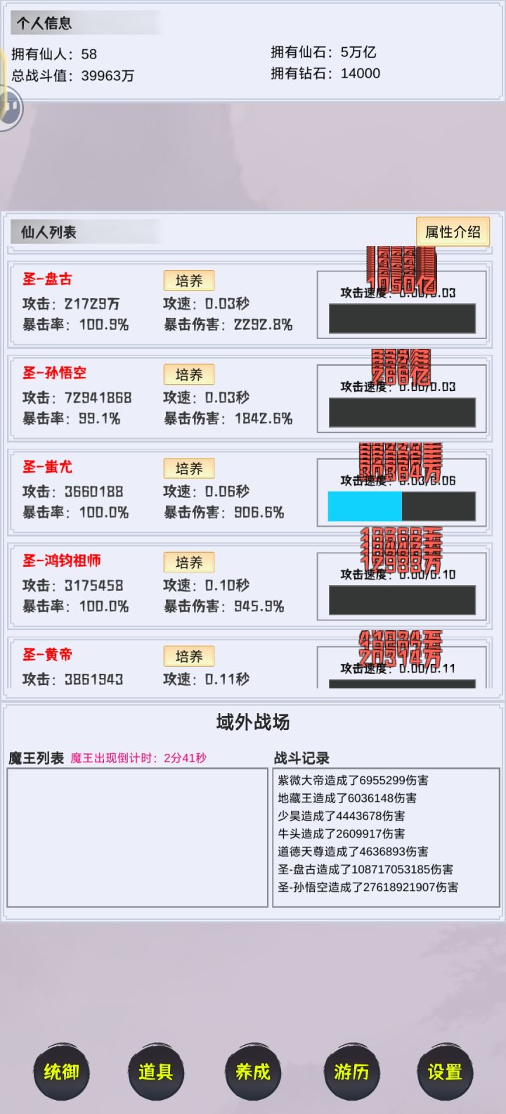 这游戏发展一个角色就行了,1-3阶装备用昼出,忘我词条,4阶开始收集仙灵套,洗几个暴击就满暴,合理利用资源魔化、升华人物淬炼