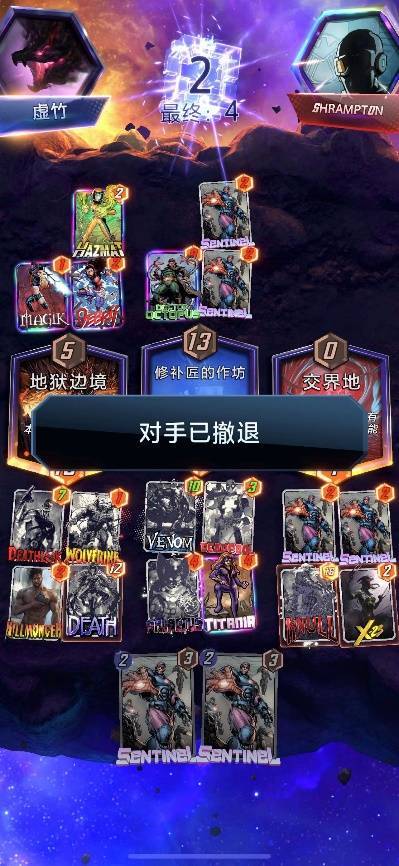 结论可以看到本次实战中,虽然我方手牌十分卡手,排序不佳,但碰到现在环境是主流的塞屎卡组还是获得了胜利,玩摧毁卡组的同学,一定要多思考我方卡组的优势是什么,预测对手的手牌和牌库有些什么卡,对局中什么时候可以snap,什么时候应该撤退,一定可以在慢慢天梯路上更上一层楼。在本文中,我们深入探讨了《漫威终极逆转》中的死侍摧毁流卡组,希望能够帮助玩家更好地理解这一机制,并在实际游戏中运用自如。随着对游戏的深入了解,玩家将能够发现更多的策略和乐趣。让我们一起在《漫威终极逆转》的世界中,体验策略与英雄主义的完美结合。