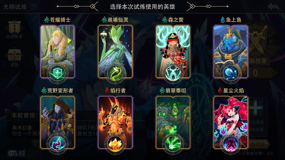 蘑菇补血流:(孢子+树妖+低语者+生命古树+治愈之风等)该常规打法一般可以拿满魔晶奖励,2000分伤害打满需要的条件较高。