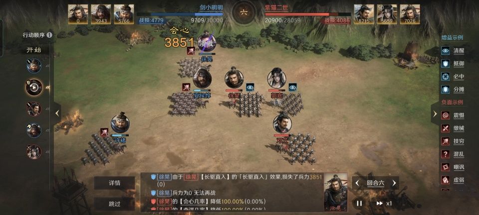 即便被对方打了个鼻青脸肿,我也还是要在此特别鸣谢这个游戏ID名为“紫猫二世”的哥们。他麾下的郭嘉、徐晃和邓艾队,轻松团灭了我这边的许褚、夏侯惇和徐晃队。我方战败的原因一目了然,那就是我这边的人全部都被技穷给限制了发挥。紫猫二世究竟是怎样做到如此密集的技穷覆盖,我也是十分好奇想要仔细复盘。